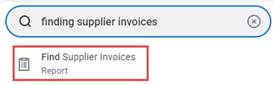 Type Find Supplier Invoices in the Workday Search Bar the click Find Supplier Invoices report. |