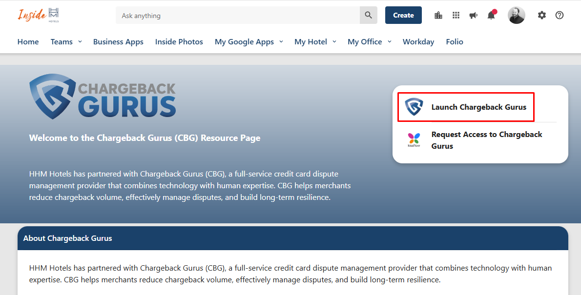 - Open the Chargeback Gurus App Resource page on Inside HHM.
