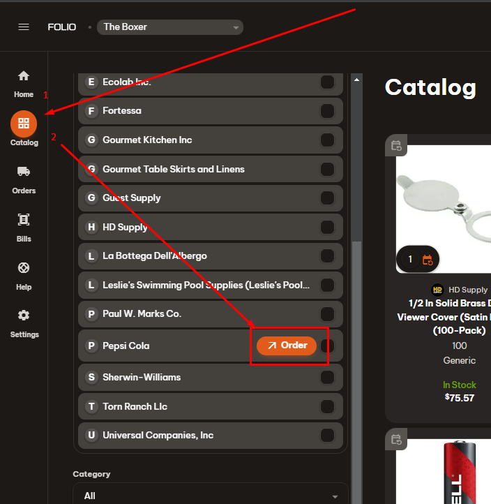 - Click the "Order" icon next to the Supplier logo as shown for Pepsi in the screenshot below.