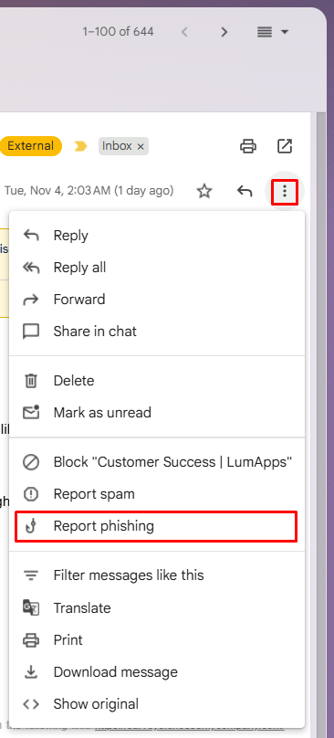 Use the "Report Phishing" button in your Gmail 3 dot menu: