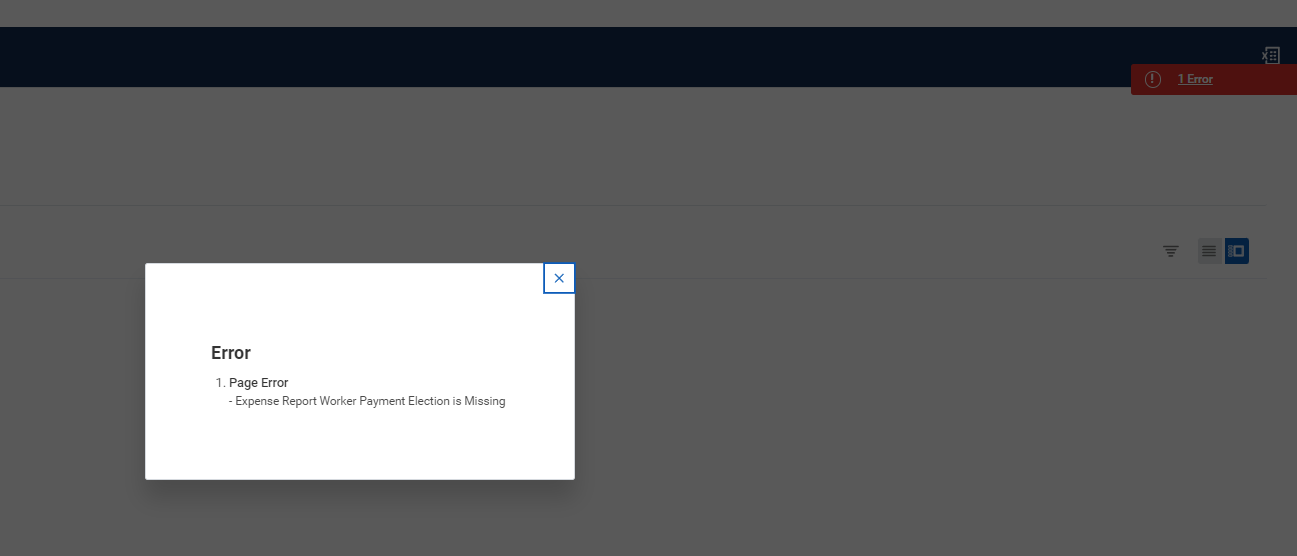 If a user gets the below error while creating an expense report in Workday, please follow the steps to select payment option: