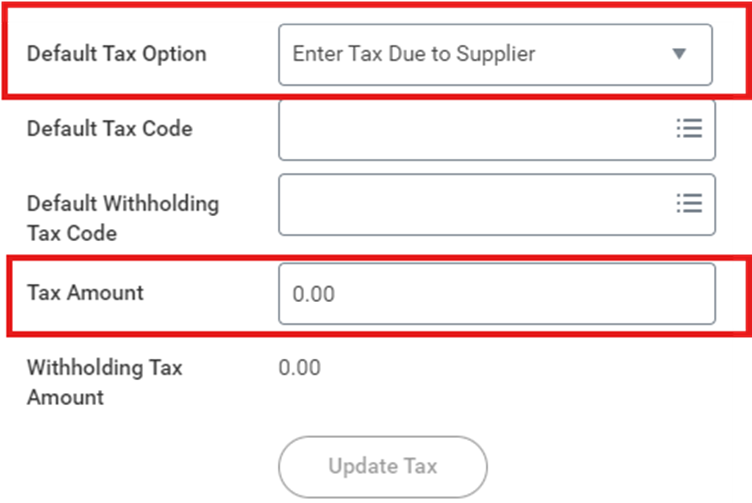 Click the dropdown for Default Tax Option and choose "Enter Tax Due to Supplier". This will give you the box to enter the amount.