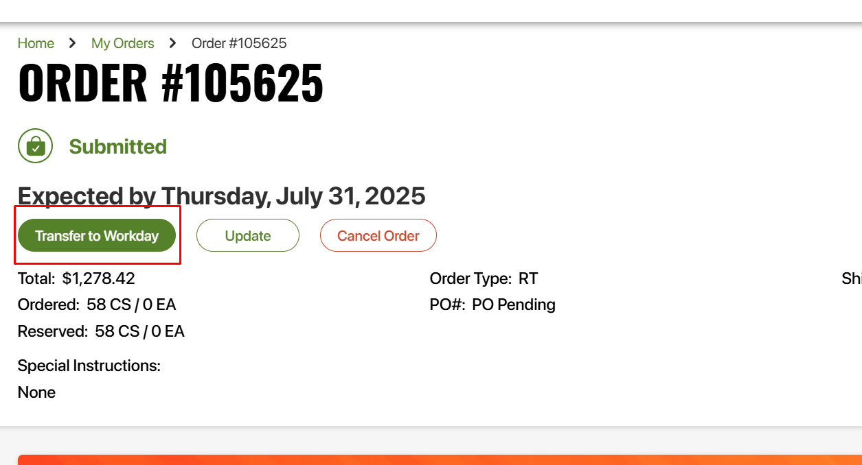 If your checkout from US Food to Workday fails, you can try to retransmit the order from within the punchout.