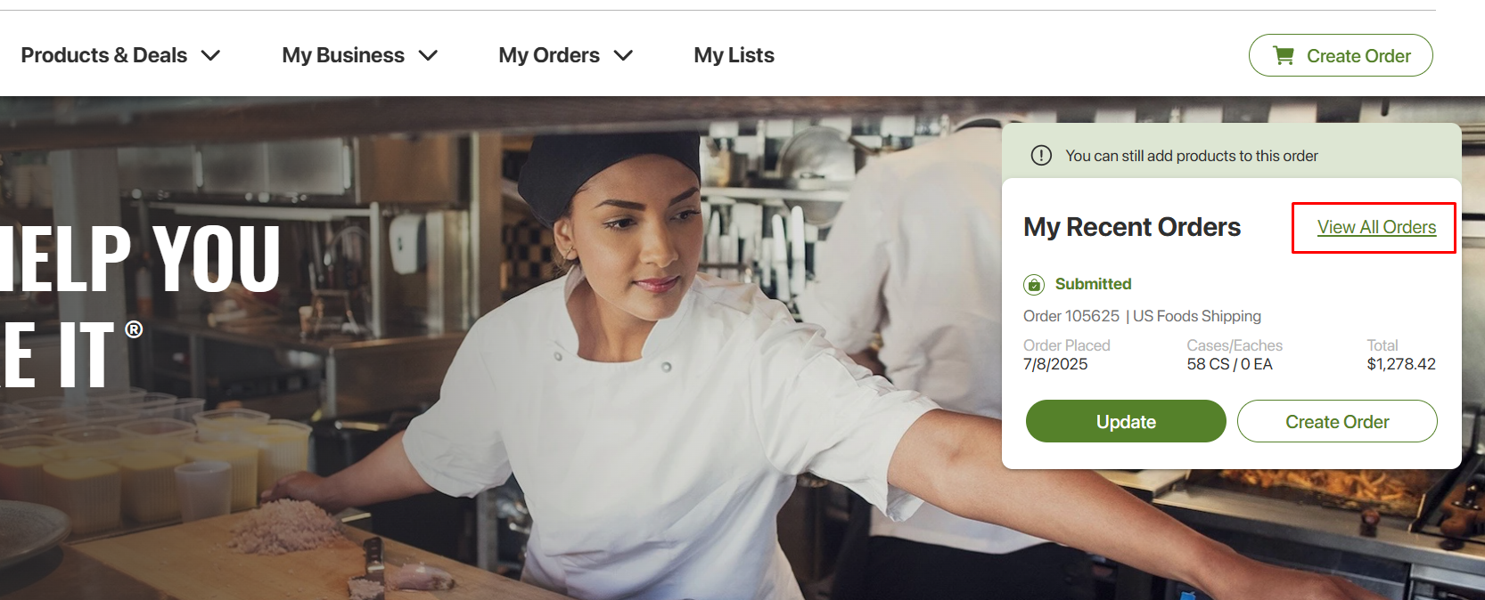 - When the punchout loads, click on "View All Orders" noted below in the screenshot: