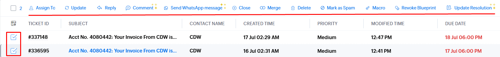 - Check 2-5 ticket boxes then click Merge (You can merge up to 5 tickets at a time).